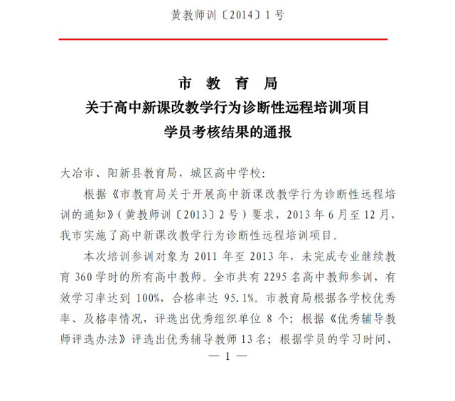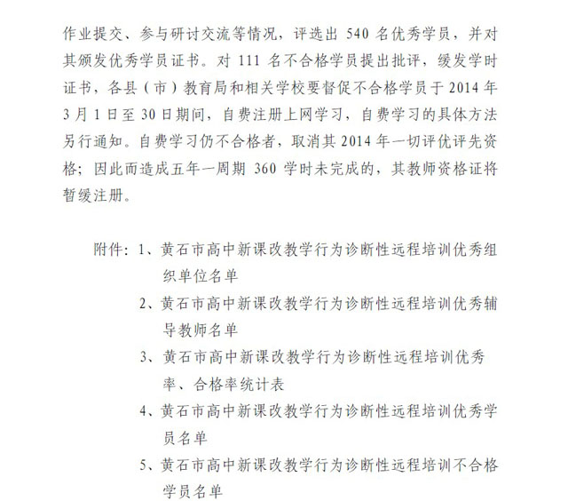 黄石市高中新课改教学行为诊断性远程培训阳新一中优秀学员名单