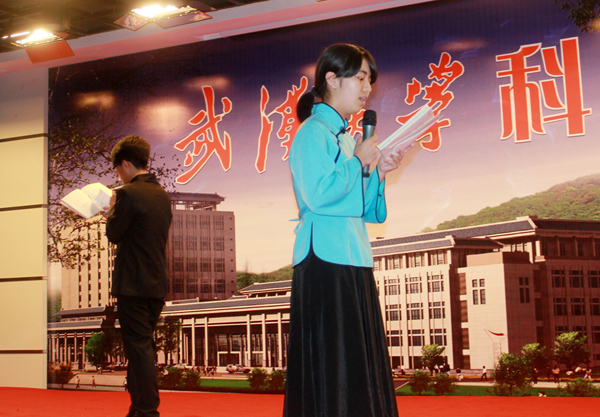 下午,全体营员、带队老师和志愿者在武大新图书馆报告厅参加“武汉科学营闭营仪式暨‘科技生花筑梦珞珈’闭营联欢会”,在闭营仪式上有营员们对科学营的感悟和总结,更有大家相互之间依依不舍的甄别。现场领导还为本次武汉大学科学营的优秀志愿者,优秀带队教师,优秀营员颁发荣誉证书,阳新一中谈汪、董欣两位营员被评为“优秀营员”,带队教师柯贤根被评为“优秀带队教师”。接着是联欢会,各个班都把多天来准备的节目奉送给大家,其中也夹杂着一些小游戏,让志愿者和我们一起同欢乐共成长。精彩的表演,热闹的气氛使每个人都沉浸其中。阳新一中由董欣、鲁奇志和石夏君三位同学参演了话剧《岁月如歌》,这个话剧故事是围绕诗人徐志摩来展开的,十分精彩,让人捧腹大笑的同时却不乏深层哲理意义。