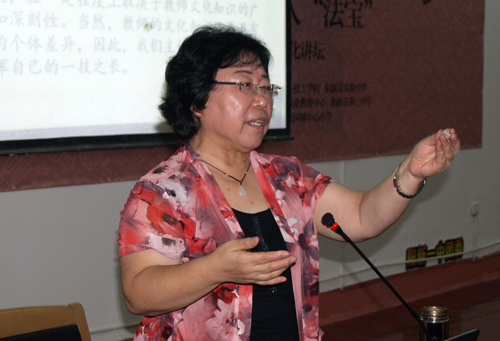 高金英老师已愈花甲,她从当前很多教师面临工作上的苦、累和烦的不如意现状入题,引出做一个有阳光味道的教师的必要性和紧迫性。从塑造教师阳光心态、做学生生命中的贵人、 加强师德建设、丰富多种知识、提升育人技巧等5个方面讲述了如何做一名有阳光味道的教师。最后,高老师特意讲述了“爱”才是教师具有阳光心态的源泉。因为有爱,才会有阳光。高老师的演讲,语言幽默风趣,富有理趣。生活中的微小故事、书本上的点滴知识、网络上的新奇现象信手拈来,使得教育教学上的大道理瞬间变得生动而易懂;同时,高老师更是在讲座中穿插一些小魔术与大家互动,与会者时不时报以热烈的掌声和会心的笑容。