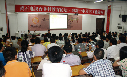 阳新一中“周末讲坛”是由黄石电视台和阳新教育局主办,黄石电视台垄上频道和阳新县第一中学承办的。这项活动着眼于师德、师魂、师道、师艺,意在感受文化魅力,领悟教育教学艺术,打造校园文化,提升学校办学品位。