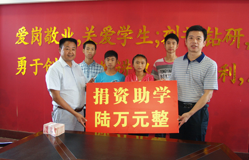 9月17日下午,学校在高一年级举行了捐资助学仪式。会上,高一年级主管校长李校长致欢迎辞,民进会员下陆支部副主委、公司董事长徐德友先生谈了资助的宗旨:不留名,不求回报,真心帮助困难学生。黄石市民进主委、市政协副主席方东明先生作了重要讲话,鼓励学生珍惜机会,好好学习,以优异的成绩报效国家。学生代表柯善德、柯燎昌作了发言,表了决心。不忘恩情,不负希望。会议最后,徐德友先生将捐助资金分送到学生手里。