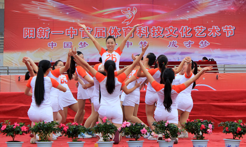 音乐欢畅,高歌和谐盛世;彩旗飘扬,同铸中国梦想。11月28日,阳新一中隆重举行首届体育科技文化艺术节。首届艺术节主题是“中国梦·一中梦·成才梦”。阳新县副县长邱治国,县政协副主席程春梅,武汉生物工程学院机电学院党总支书记黄利平、学院招生处处长刘学贵,县教育局党委书记陈前波,政府办副主任孙孟武,县科协主席陈树生,县其他科局领导,县教育局科室长,县教育局直属学校、各乡镇中心学校领导及赞助单位代表出席了开幕式。