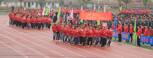 阳新一中各年级师生方阵依次列队进场。由校运动队组成的国旗方阵,校旗方阵,校徽方阵,迈步方正,整齐威武;由高一学生代表组成的红旗方阵,由高二学生代表组成的花环方阵,由高三学生代表组成的彩球方阵,踏着运动员进行曲,摇曳生姿;各年级教师组成教师方阵,他们身着统一的校服,步伐铿锵;他们精神饱满,气宇轩昂;他们壮志满怀,英姿飒爽地走过主席台。他们代表着阳新一中4000余名师生员工,接受与会领导和嘉宾的检阅,彰显自信,展示风采。