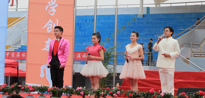 高三学生表演的校园歌曲大联唱,清新而优美,质朴而动听,他们唱出了学生内心的多愁善感,唱出了校园生活的多姿和亮丽,更唱出了青春的奋斗与无悔的追求。表演大联唱的学生都来自高三传媒班,在艺考来临的紧要关口,他们仍然挤出时间参与文艺汇演的排练与演出,这是阳新一中“文化强校”理念的熏染,更是学生们强烈的学校归属感的体现。