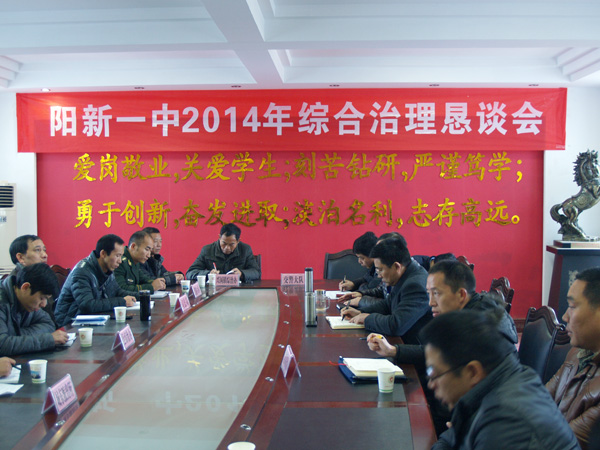 各参会单位对学校的综合治理工作表示肯定的同时并提出很多建设性意见,特别是县综治办陆宏伟主任对我校的综合治理给出高度肯定:一是阳新一中学校管理思路清晰,通过综合治理抓全面管理;二是阳新一中新的领导班子高度重视综合治理工作;三是阳新一中综合治理措施有效;四是阳新一中综合治理工作责任明确,真正做到看好自己的门,管好自己的人,做好自己的事;五是阳新一中综合治理成效显著。