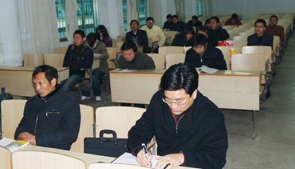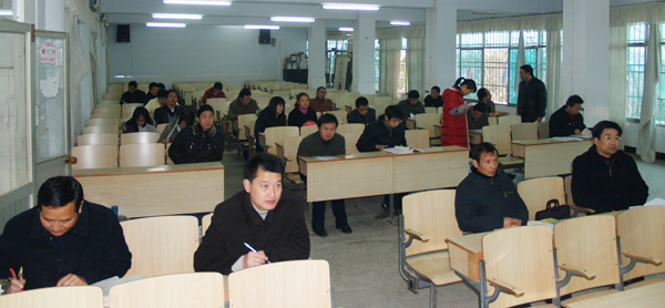 学校副校长、副书记明道树与老师们一起学习会议精神 |