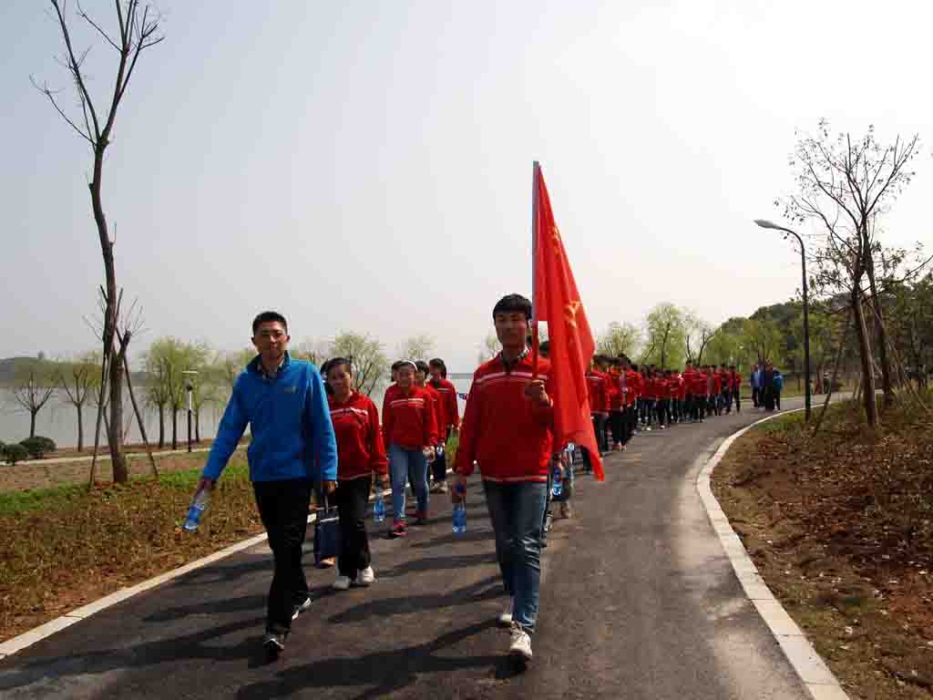 当天下午1:48分,全体师生从校门口出发,徒步前往莲花湖明月湾公园。在近一个小时的徒步前行中,同学们看到了碧波荡漾的莲花湖水,满树怒放光彩夺目的鲜花;领略到了现代摩登的标志性建筑;曲折有致与莲花湖相得益彰的木质小桥。途中的风景、建筑与自然相处的如此和谐,无不让同学们感叹自然的美丽与神奇,更赞叹阳新人民的鬼斧神工。到达目的地后,G 16A 、B班的同学们与培优班的教师们进行了亲切的座谈。教师们谈了培优的构想、规划和要求;同学们谈了自己对培优班的态度,也提出了自己的建议。座谈会最后肖主席对同学们提出了要求。要求同学们在新常态下,要树立“高”目标,对自己“高”要求,从而达到新“高”度。在同学们的掌声中,我们感受到同学们坚定了信心,坚决了态度,作好了吃苦奋斗的准备。