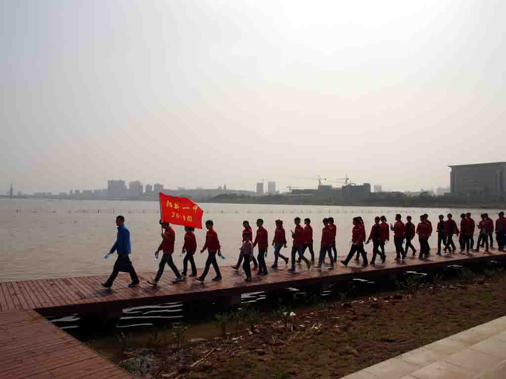 下午5:20分,全体师生在印有“阳新一中2013级”的红旗带领下,踏着夕阳,伴着鸟语踏上了返校的路途。【供稿 江章令】【摄影 王有海】