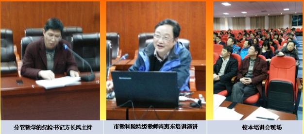 2015年4月7日晚7:00~9:10,肖惠东院长在我校综合楼学术报告厅做了“构建优质高效复习课的明道、优述之路”的专题报告会,高三全体教师、教研组长、高一高二备课组长以及中层以上干部参加会议。会议由分管教学的纪检书记方长风同志主持。校级领导做好了虚心学习、认真听讲和做笔记的表率,一部分非毕业班的青年教师自发地参加了报告会。