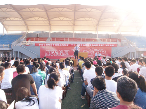 韩威东老师做了《明确目标,坚定信念,决胜未来》的励志报告。韩老师主要从“良好心态”、“情绪关系”、“高原现象”三个方面做了激情洋溢的演讲。韩老师的演讲旁征博引,深入浅出,生动活泼,妙趣横生。全场游戏互动不断,气氛热烈,高潮迭起。