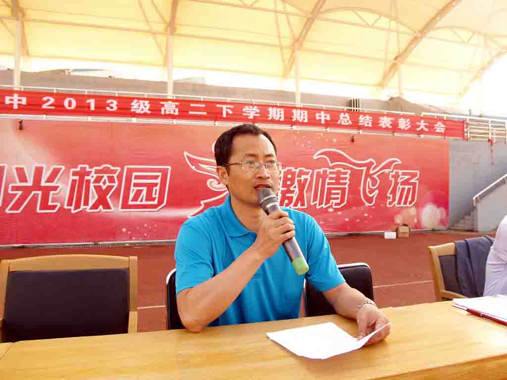 随即,肖主席从总体情况、各科情况、各班情况、各分数段情况等方面对高二年级此次期中考试所取得的成绩进行了详细的分析和对比,在分析和对比中肖主席还大力表扬了这半学期以来在工作和学习中锐意进取顽强拼搏的优秀学生典型和教师典型,他们有各班成绩优秀学生、品行优秀学生以及优秀班主任、优秀备课组长、优秀普通教师等。在高度肯定成绩的同时,肖主席也向大会全体师生明确指出了在过去学习和工作中的一些缺陷和不足,肖主席的归纳切中要害,使人警醒,引人反思。