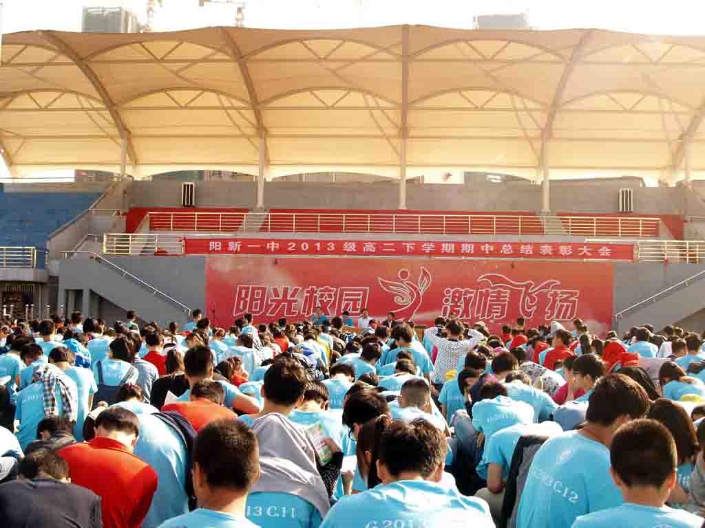 5月12号早上七点,我校高二年级在学校塑胶体育场隆重召开了期中总结暨“庆五四、展风采”球类比赛表彰大会。