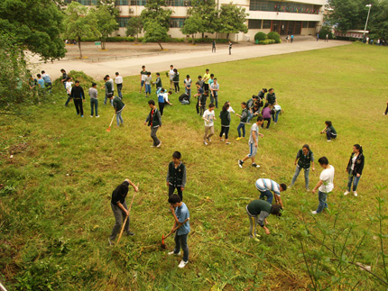 活动开始后,各班劳动有序展开。各班班主任和同学们打成一片,劳动中时不时传来快乐的笑声。年级和政教处有关领导也亲自参加了劳动。