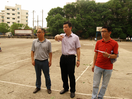 阳新一中副校长、高一年级负责人李永红(中间)亲临指挥劳动现场 |