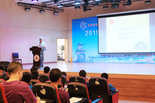 “‘你在哪里,中国就在哪里。你成为什么样的人,中国就成为什么样的国家’中国的崛起需要我们的不断学习”,李教授用这样一句简短而让人深思的话开始了讲座。为什么要读大学?‘超越自己’应该成为回答这一问题的最佳答案。对于高中生,大学对他们既向往又陌生,为什么要上大学?选着什么样的专业这些问题都困扰着同学们。“大学教育主要是一个基础教育和素质教育,拓宽知识的宽度、培养独立思考的能力是大学阶段的主要任务” 李教授作为考古系的教授,站在历史的高度,为营员们解惑。“历史像尘埃,学习历史是一种自我认知,更是因为要突破当代,因为生命很短,死亡会很长”。李教授用以色列犹太民族这一历经沧伤而又顽强生存并崛起于世界民族之林的民族为例,让营员们知道,有一段刻骨铭心的历史无论是对个人还是对整个民族都是多么的重要。