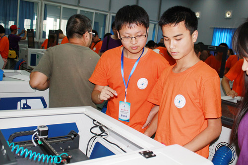 阳新一中学子在此次夏令营中表现非常突出,夺得了骨牌创新游戏冠军、3D打印和激光雕刻实验比赛一等奖被我校学生包揽,刘志成、陈诚两名学生获得优秀营员。