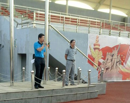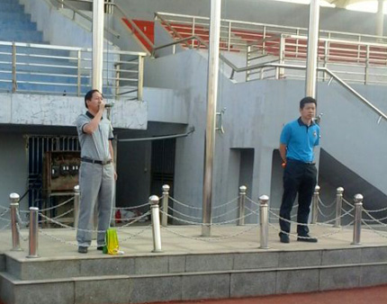 本次晨训由高二年级党支部书记蔡云秀主持。年级主任戴征辉介绍了本学期高二年级管理工作上的一些创新举措,提醒学生学会将人生的长远目标进行分解,坚持完成各分段目标,从而走向成功。