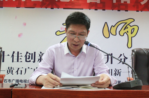 阳新一中信息技术中心主任刘会琢宣读文件 |