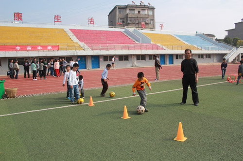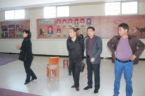 黄石体育局训练科长张涛,体校校长王书记,田径队总教练王鸣明一行三人来我校检查十五届省运动会冬训工作情况。