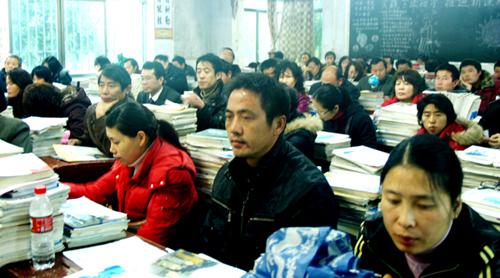 楼电教室,其他教室内的学生、家长通过校园广播系统进行同步收听。本次家长会的主题是“加强家校联系,推进课程改革;形成教育合力,共同培育新人”,旨在让学生家长了解新课改,支持新课改,同时向他们汇报我校在新课改中采取的方法、措施和取得的成果。会议由年级主任陈绪全主持,年级负责人、一中副校长、副书记明道树向家长们汇报了这学期来的年级工作情况,宣读了新课改的有关政策,为了孩子的未来,他还向家长们提出了一些具体要求。
