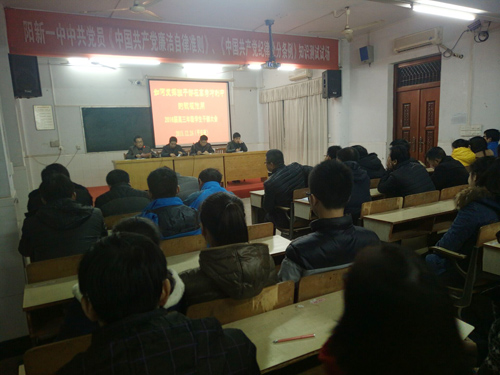 出席此次会议的有:我校工会主席、2016届高三年级负责人肖绪曙,我校政教室主任石章权,高三年级党支部书记刘元庆,高三年级主任江章令,高三年级全体班主任以及各班班干部。大会由年级党支部书记刘元庆主持。