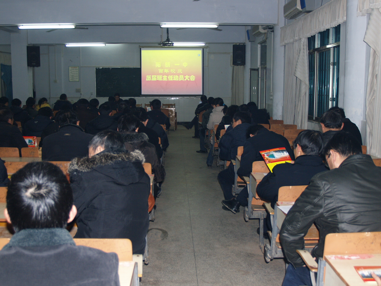 最后,一中校长、党总支书记赵立中作重要讲话。他说,举办校庆意义重大,是对阳新教育历史的回顾,是对过去经验的总结,可以承前启后,继承和发扬优良传统,为以后教育的健康发展打基础。我校举办百年校庆已经得到了县委、县政府的支持,得到了大批校友的支持,绝大多数校友赞同在现校区举办校庆。目前我校为校庆也做了一些工作,成立了校庆专班,校庆专班将每半月出一期简报,每月有工作安排表。班主任们要热情支持校庆的有关工作,加强校友联系,提供有关信息,积极撰写回忆录,参与校庆文集的编写。学校将计划进一步做好以下几件事情:争取县委县政府的支持;争取老校长的理解与支持;争取新老校区校友的沟通与支持;争取社会各界人士的支持;做好各项准备工作。班主任们一定带头行动起来,继承和发扬阳新一中的优良传统,讲团结、讲和谐,把我们一中这件百年大事办好。