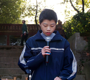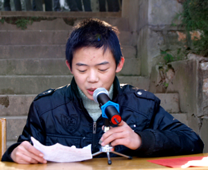 理科第一名胡学财同学发言 文科第一名成正茂发言