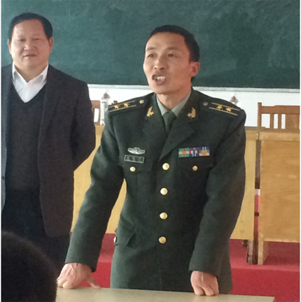 3月16日下午2:30,湖北省黄石军分区杨艳平参谋、曹飞参谋在阳新县人武部李利部长的陪同下来到我校,对我校国防教育情况进行调研,并就2016年征兵登记工作做宣传。