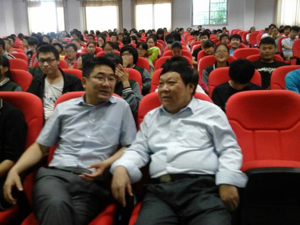 5月19日上午10:10,我校高二年级学生三百多人,在学校学术报告厅,迫切期待着侯祖飞教授的到来。10:20,侯祖飞教授在校长明道树同志的陪同下,满面慈祥的走进了学术报告厅。在年级党支部书记蔡云秀同志稍作介绍后,报告厅马上响起了震耳的掌声。