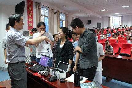 5月25日上午,阳新一中学术报告厅座无虚席,气氛热烈,“大手拉小手——科普报告黄石行”走进阳新一中。现场由著名的科普专家陈晓东教授来校为大家作题为《机器人上战场》的科普报告。教务室主任陈绪义主持报告会,阳新一中近400名实验班学生及教师参加了本次活动。