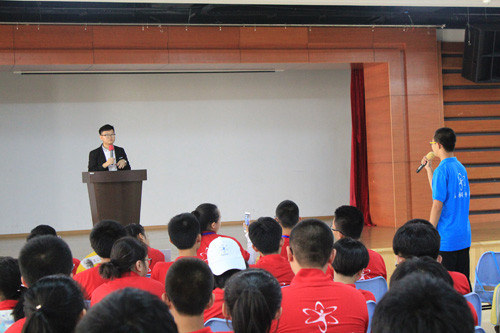 上午8:30,在活动中心201举办了学长交流会。优秀工大学生、本次活动志愿者林佳琦主讲了此次交流会。他依据营员们关心的问题,包括高考、自主招生等情况进行了讲述,并分享了高中的学习方法,同时也简要介绍了大学生活的特点。会场气氛非常活跃,在提问环节,营员们争先恐后地提出自己的问题,例如如何在高三平衡学习和班级工作,如何填报高考志愿等。林佳琦耐心地为之一一解答,使得营员们对于高考、对于大学有了更深刻的了解。会后,营员们激动地与学长合影留念。