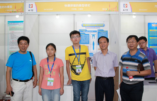 本次比赛,每省仅有十余件作品参加全国决赛,经过专家评选、网络投票、选手答辩环节的层层比拼,我校熊樟持、朱紫月两位同学的研究成果——《快捷拼接的新型铁钉》荣获铜牌。湖北省科协,黄石市科协、科技馆领导带队前往现场观摩,与我校参赛选手合影,对他们取得的研究成果表示祝贺。