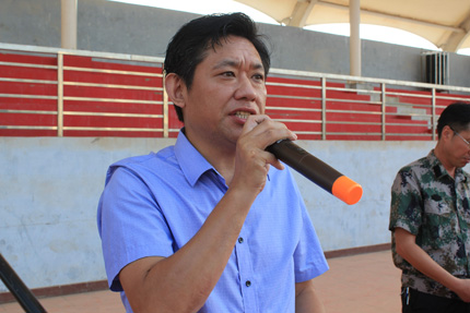 仪式在慷慨激昂的国歌声拉开了序幕,阳新一中校长明道树作军训动员讲话。明校长在讲话中结合我校刚毕业高三学子所取得的辉煌成绩和暑期学校新增的一些重大荣誉来激励和鼓舞台下的新一届高一学子,使他们明白一中是块神奇的沃土,他们在这里生活和学习机会难得,前途无量。同时,明校长也对高一新生提出了要求:希望他们严守纪律,磨炼自己,尊敬教官,尊敬师长,以实际行动来展现新一届高一学子的优良精神风貌。