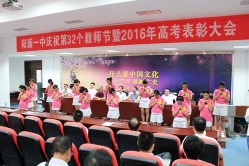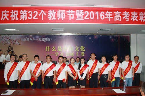 9月10日上午9:30,为庆祝第32个教师节暨2016年高考表彰大会,我校综合楼学术报告厅内座无虚席。