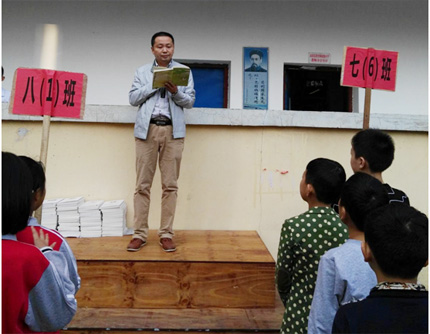阳新一中工会主席、分管初中部领导肖绪曙为月考优胜者颁奖 |