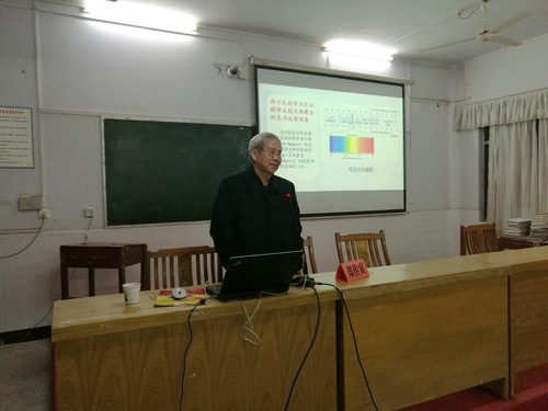 与此同时,武汉大学原文学院院长、阳新一中65届校友、《阳新一中校歌》词作者郑传寅教授在教学楼电教室为高三学生主讲题为《戏曲舞台的色彩选择》的文学讲座。