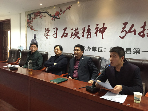阳新中语会秘书长张绪梁(右一)讲话 |