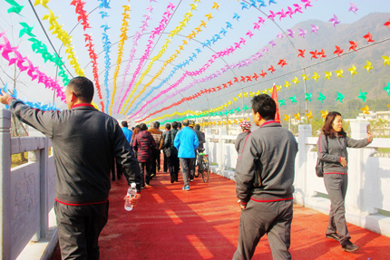 参观完新一中,9:20左右,大家再次登上大巴车,向乡博园出发。乡博园位于三溪镇,驱车约四十分钟,上午10:00左右我们到达目的地。此时虽是隆冬时节,但天朗气清,惠风和畅,“不似春光,胜似春光”。大家沐浴在冬日暖阳下,徜徉在青山绿水之间,放松心情,好不惬意。这时,阳新一中自行车骑行队,也进入了乡博园。骑行队员们,意气风发,鲜红的骑行队旗帜,迎风招展,为乡博园增添了一抹亮丽的色彩。