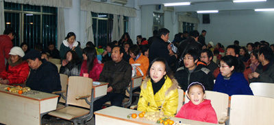 学校副校长、副书记、高一年级负责人明道树发表热情洋溢的讲话。他先向各位家属及教师致以节日的问候和新年的祝福,并介绍阳新一中近年来在大家的支持下取得的成绩。接着他说,新课改是一场前所未有的教学变革,老师们压力大、教学任务重,由于大家的共同努力,学校在新课改中有了好的开头,并取得了不少成绩,但仍需各位教师和家属长久的理解、