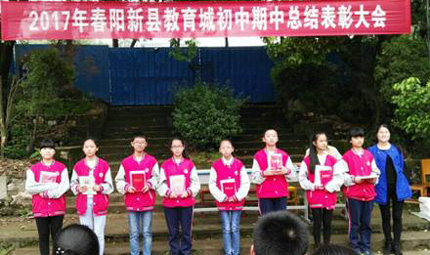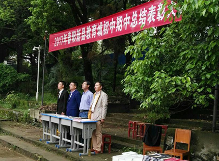 4月27日阳新县教育城初级中学在篮球场隆重召开了2016--2017学年度下学期期中总结表彰大会,出席大会的领导和老师有:阳新一中党总支书记、校长明道树,阳新一中党总支委员、工会主席、教育城初中主管领导肖绪曙,教育城初中主任陈世明、副主任明平发、钟周以及教育城初中的全体老师。
