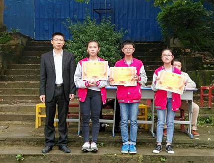 阳新一中工会主席肖绪曙为获奖学生颁奖 |