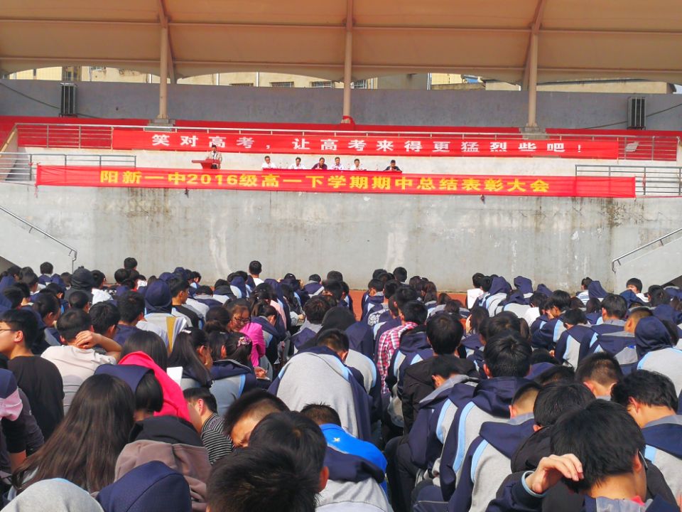 4月27日下午三点,阳新一中2016级高一年级在学校运动场隆重召开了期中总结表彰大会。