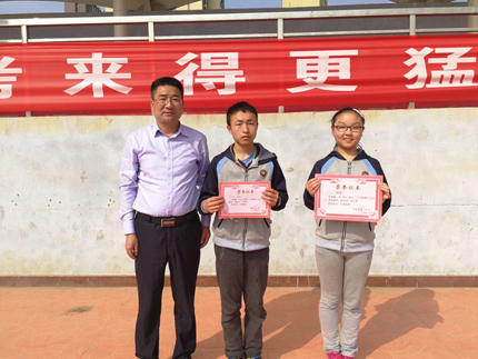 阳新一中校长明道树(左一)给优胜者颁奖 |