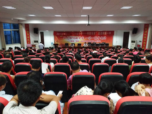 晚上7:00,全体教师汇集在学术报告厅,出席此次大会的人员除了全体教师外,我校校长、党总支书记明道树,副校长潘龙星,副校长柯美宝,副校长梁师稳,校纪检书记方长风,校工会主席肖绪曙和副校长李永红等校级领导悉数参会。大会由我校纪检书记方长风主持。明校长在会上做了重要讲话。