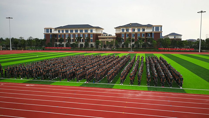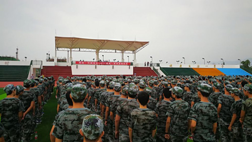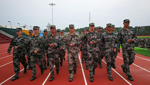 仪式最后,明道树校长宣布军训开始,身着迷彩、军容整齐的22个方阵英姿飒爽地走向训练场,正式拉开了军训的序幕。