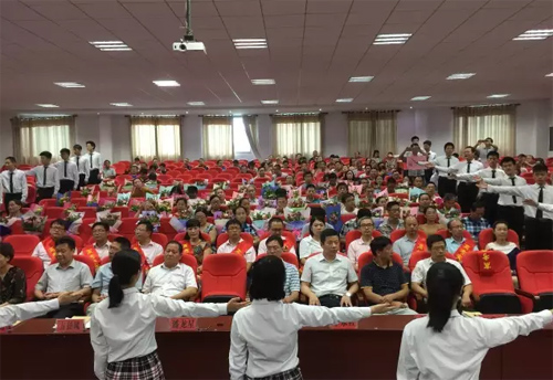教师代表陈绪义老师为教师节浓情献辞《假如我是一棵树》,并深情表达自己愿做阳新一中校园里的一棵树的美好愿望;教师节刚被评为“阳新最美教师”的严献君老师代表2017届高三年级教师作获奖感言,感谢学校,祝福学校。