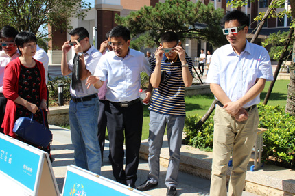 领导、来宾体验“三维立体”效果 | 领导、来宾操作科普小实验 |