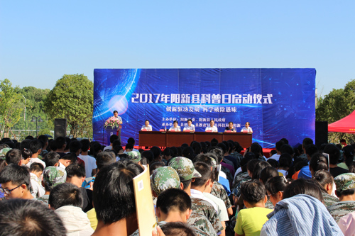 9月14日上午九点,我校新校区综合楼广场人满为患,这里正在举行2017年阳新县科普日启动仪式。参加启动仪式的领导和嘉宾有:市科协党组成员、副主席方世江,市科技馆有关领导,县委副书记、政法委书记万鼎,县人大副主任王铭恩,县政协副主席侯建君,县委办副主任何克成,县委宣传部副部长陈前波,县政府办副主任柯尊学,县直相关单位主要负责人,以及社区、社团组织有关负责人、科普志愿者和我校部分师生。