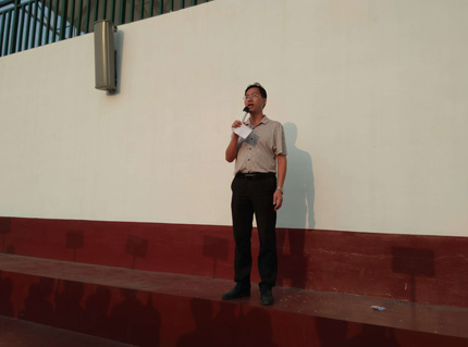 晨训现场 阳新一中副校长梁师稳讲话