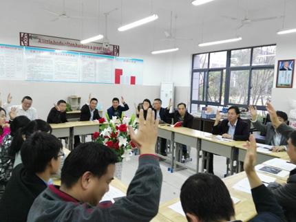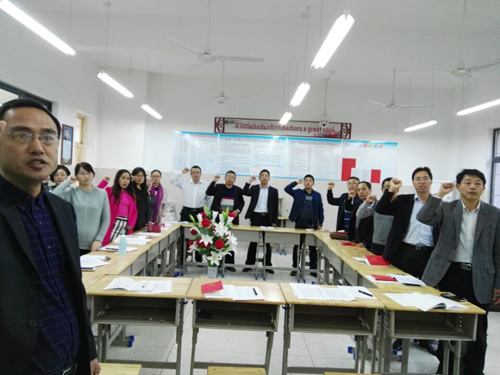会议首先完成了党员民主生活会的四项规定动作,全体党员起立面对党旗重温入党誓词、全体党员按月缴纳党费、全体党员集体诵读党章党规、党支部提名全体党员表决评议“每月一星”。经过年级全体党员教师的民主评议,高二年级(1) 部党支部“十一月之星”为英语鲍淑荃老师。